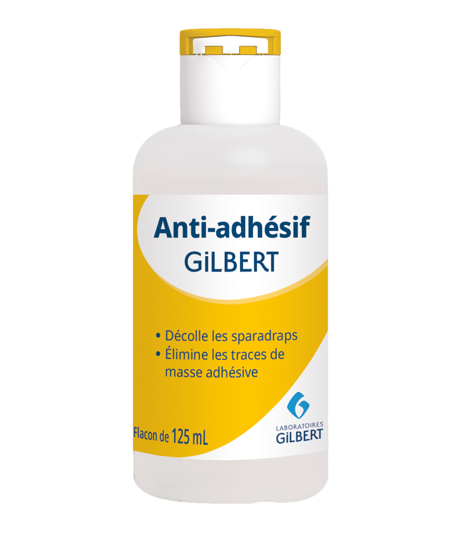 L’Anti-adhésif facilite le décollement des pansements adhésifs et permet d’éliminer les traces de masse adhésive. -