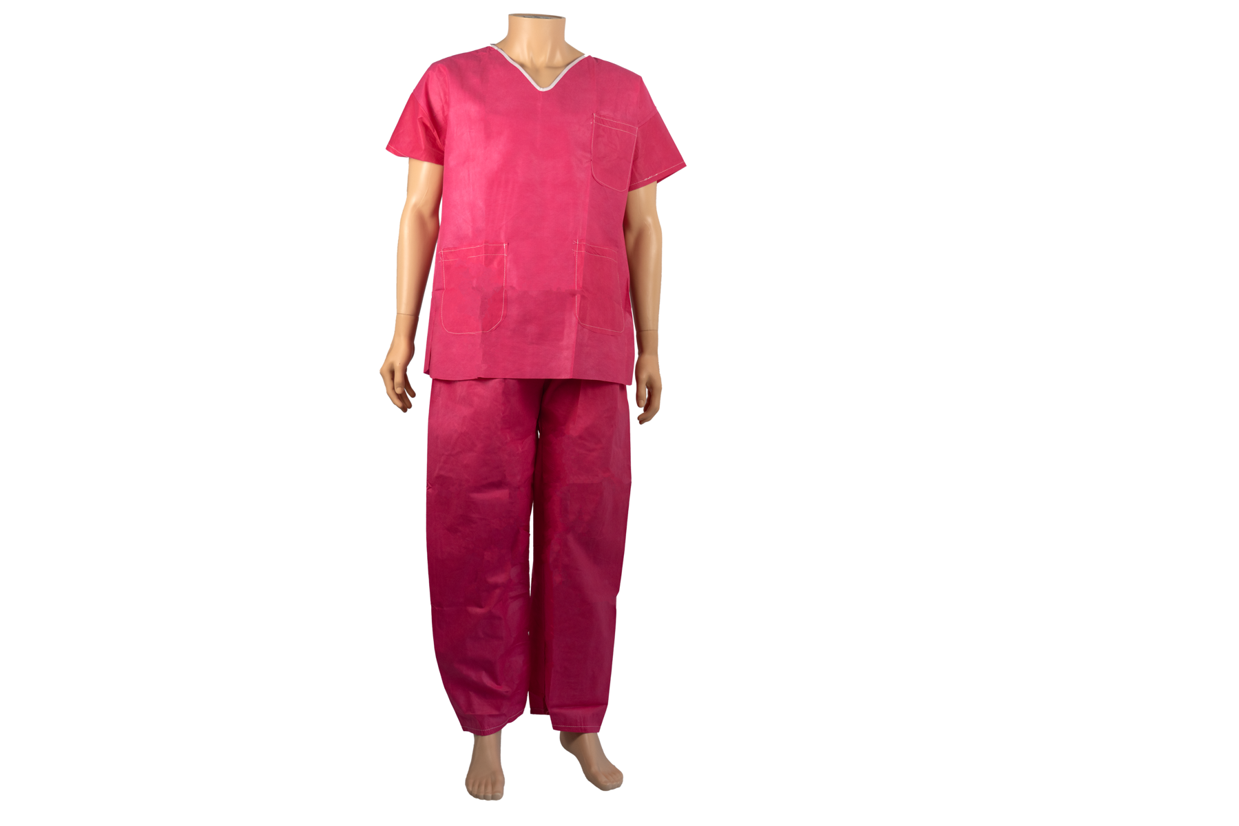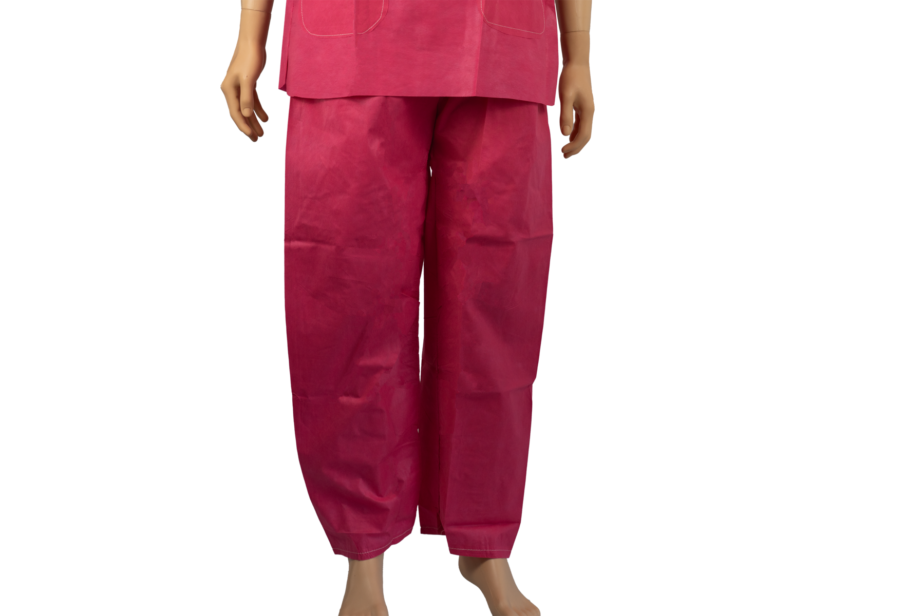 Habillage de protection à usage unique du personnel soignant ou du patient en établissement de santé. Non-Tissé SMS nid d’abeille Petit Losange - 40 GSM +/- tolérance. Coloris rose. Taille XL. -