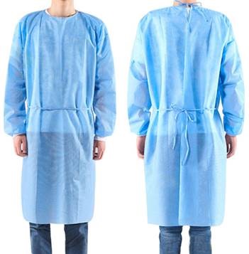 Blouse de protection bleue. Liens de serrage à la taille et au cou. Non tissé 20G contenant de la matière recyclée. -